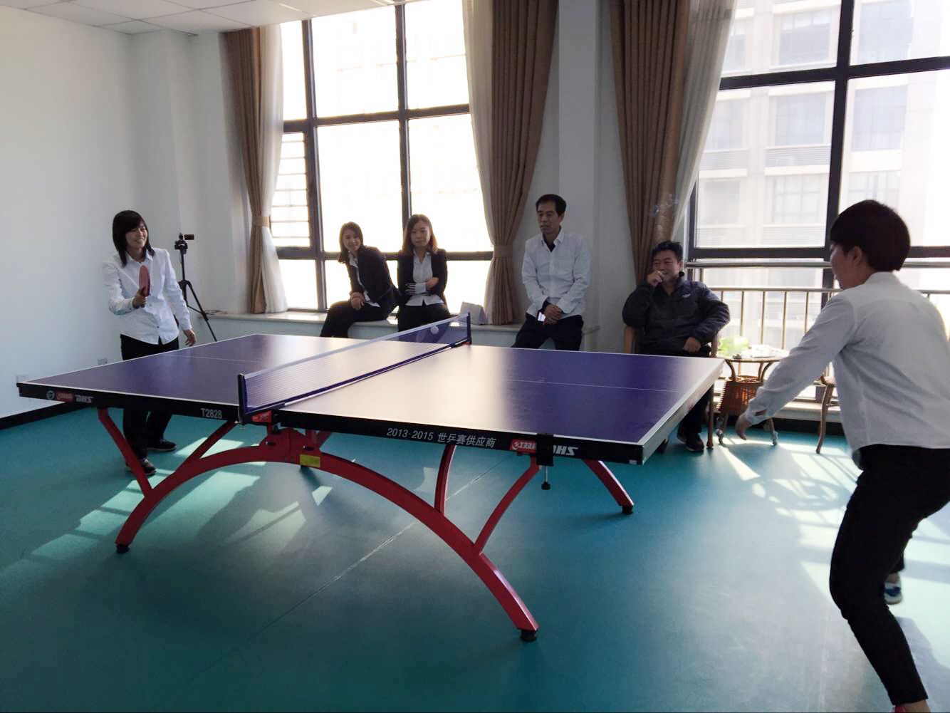 微风吹散连日的雾霾,石家庄的限行也解除了。和煦的阳光透过玻璃,晒得每个人都幸福满满的。在这个艳阳高照的日子里,百步集团乒乓球比赛开始了。
